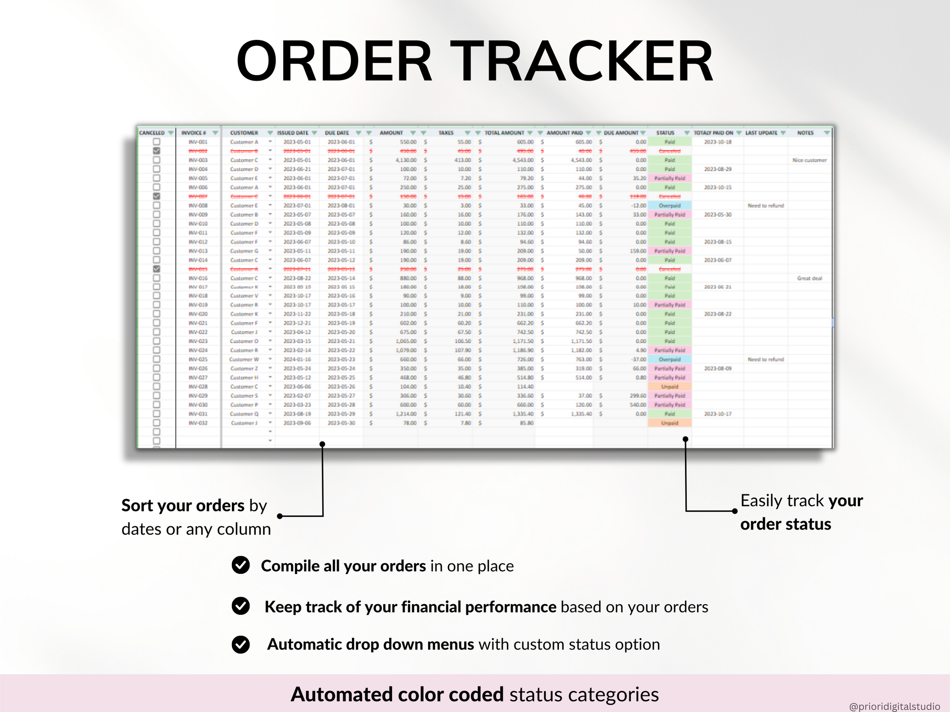Our Finished Products Small Business Tracker Spreadsheet is perfect for small business owners looking to track their inventory, orders or customer information.