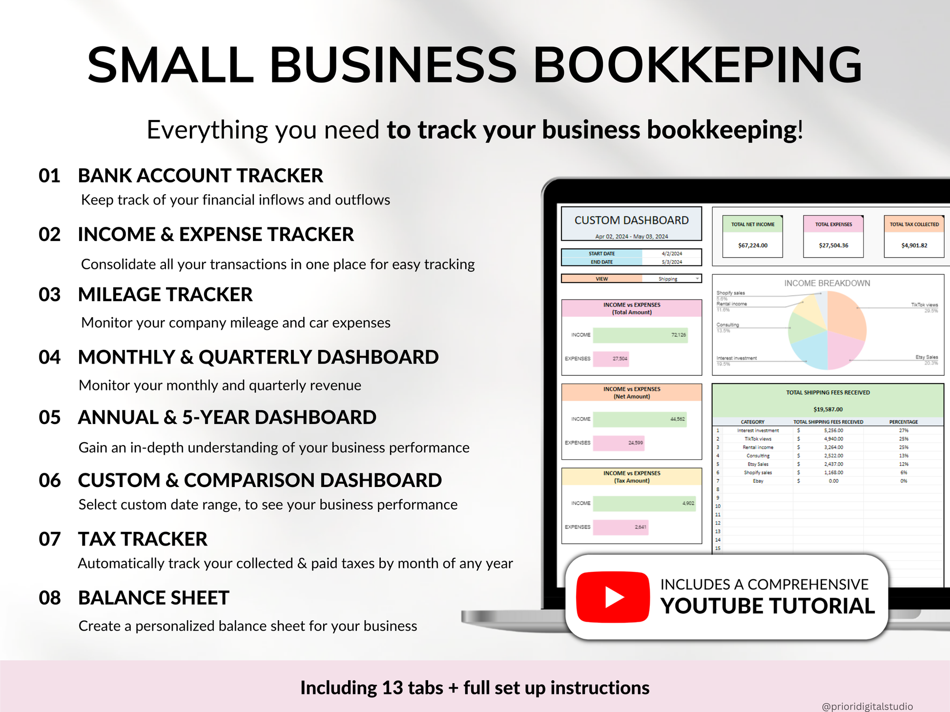 Our Ultimate Service Business Bundle is the perfect tool to take manage your Service Based Business ! This bundle includes 4 SPREADSHEETS to help you efficiently manage your bookkeeping, track your service based business transactions, stay on top of bills, and effortlessly track your clients!